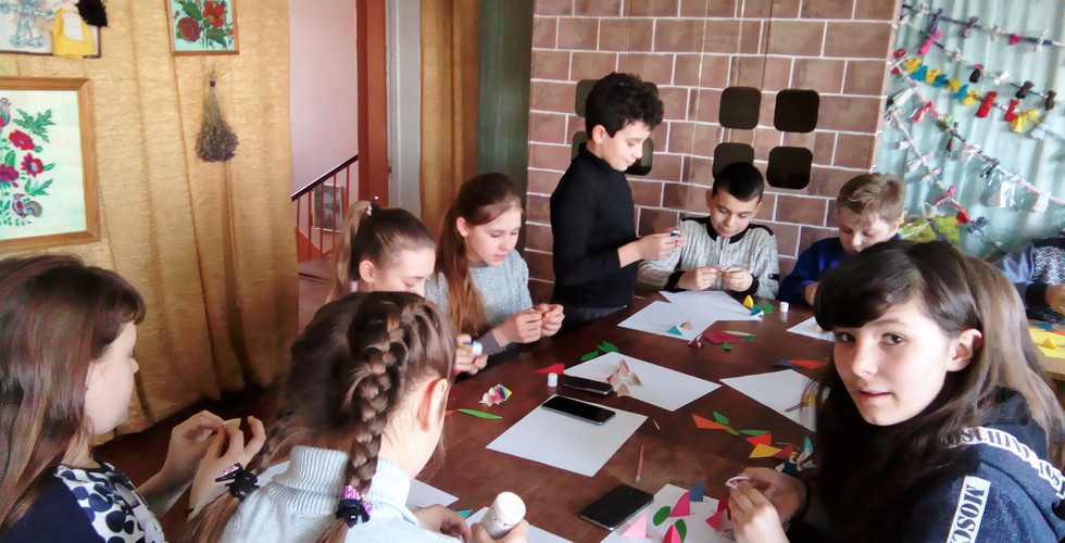 Тетяна Іванівна запропонувала учням 5 та 6 класів школи №14 м. Лисичанська, які були запрошені до нас у гості, не тільки весело провести час у змаганнях, а й зробити чудовий подарунок до свята для своїх дорогих жінок.