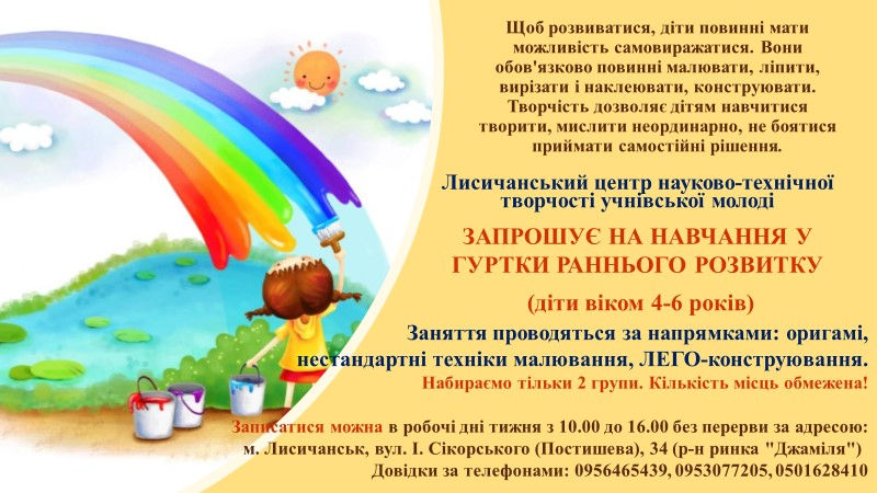 ЗАПРОШУЄМО НА НАВЧАННЯ У ГРУПИ РАННЬОГО РОЗВИТКУ